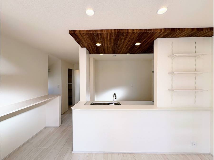 約20帖のゆとりあるリビングは、家具を配置しても広々。家族が自然に集まる、開放感のある空間が魅力です。