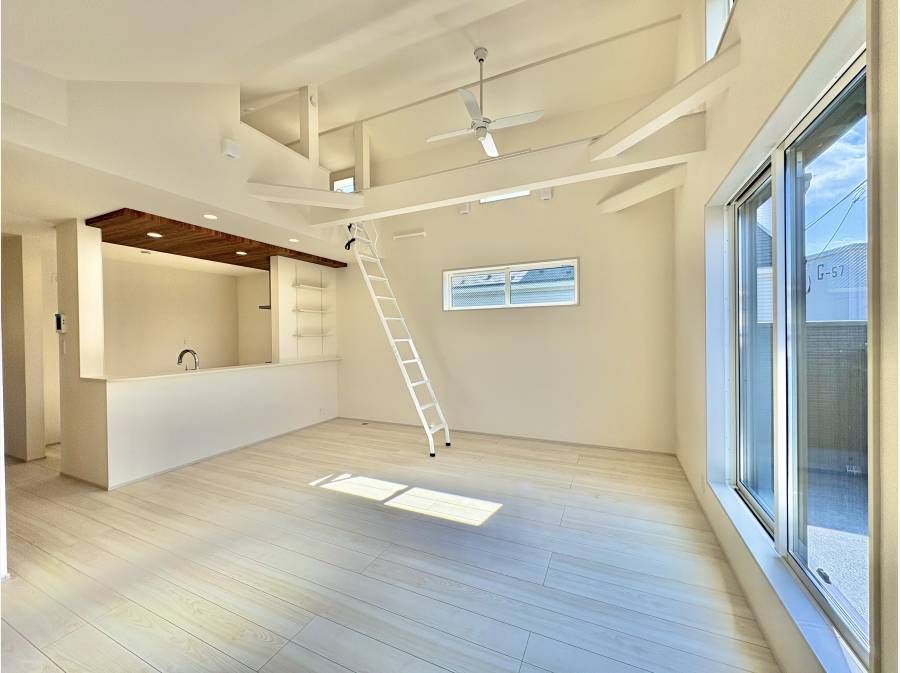 20帖以上の広々としたLDKは、勾配天井とロフトが設けられており、開放感のある空間が広がります。