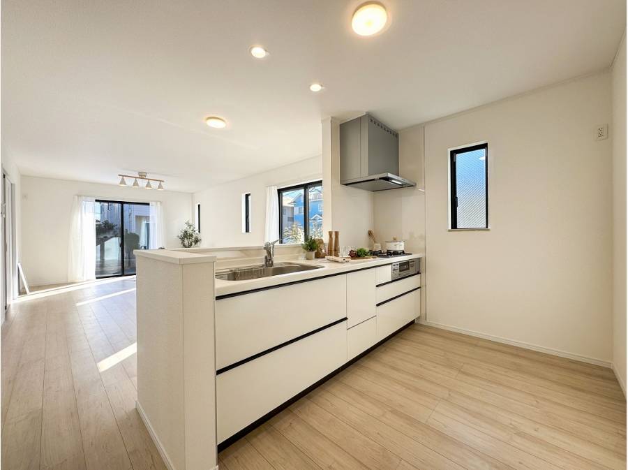 キッチンや洗面、バスルームは近くに配置されており、家事同線がスムーズなプランが嬉しい仕様。