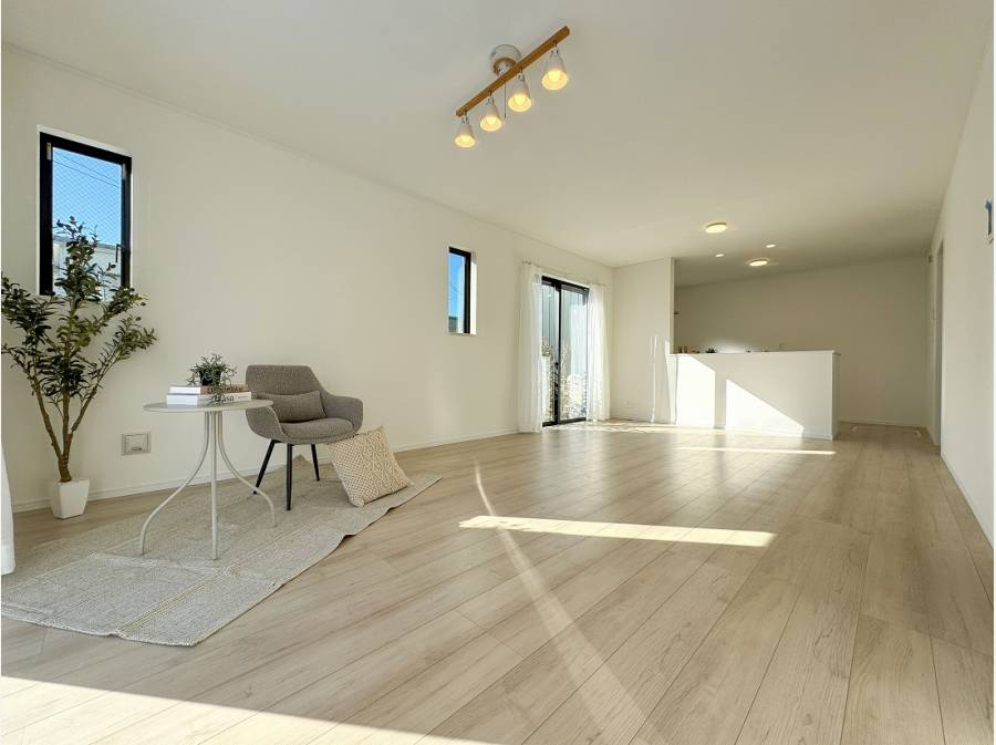 玄関を入ると南に広く面した明るいリビングが広がります。