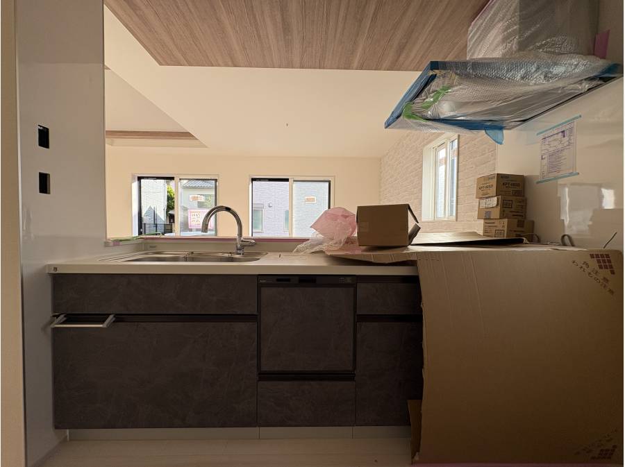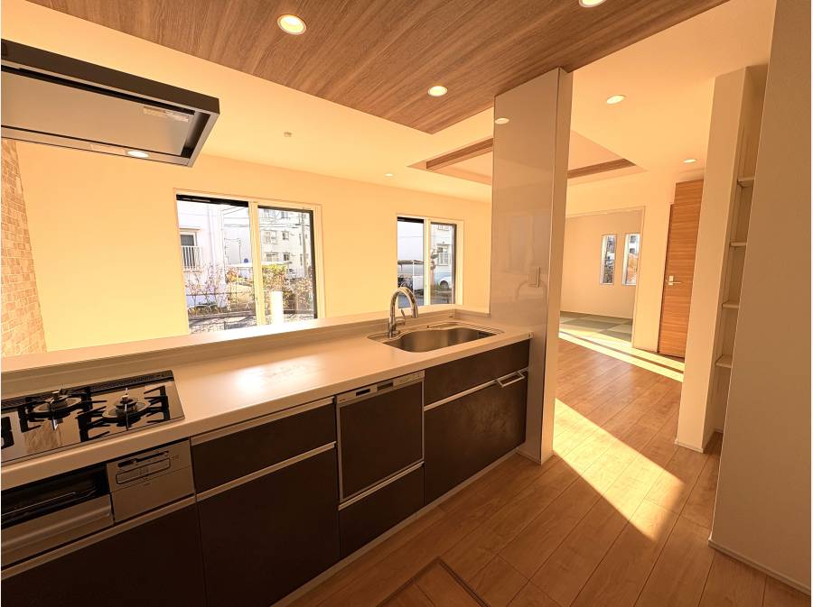 キッチンにはフルフラットカウンターを採用しており、食洗機や浄水器も標準で装備されています。