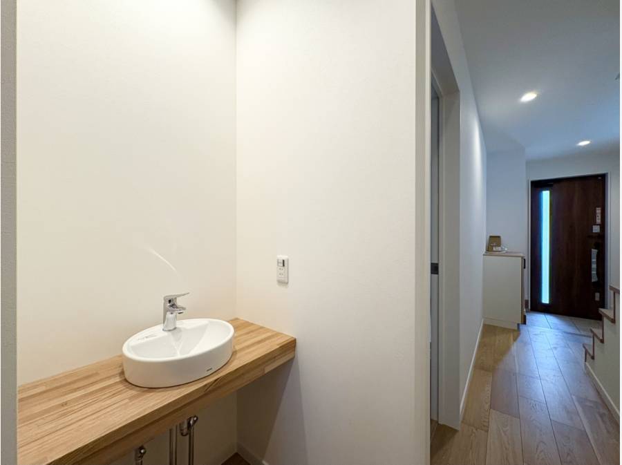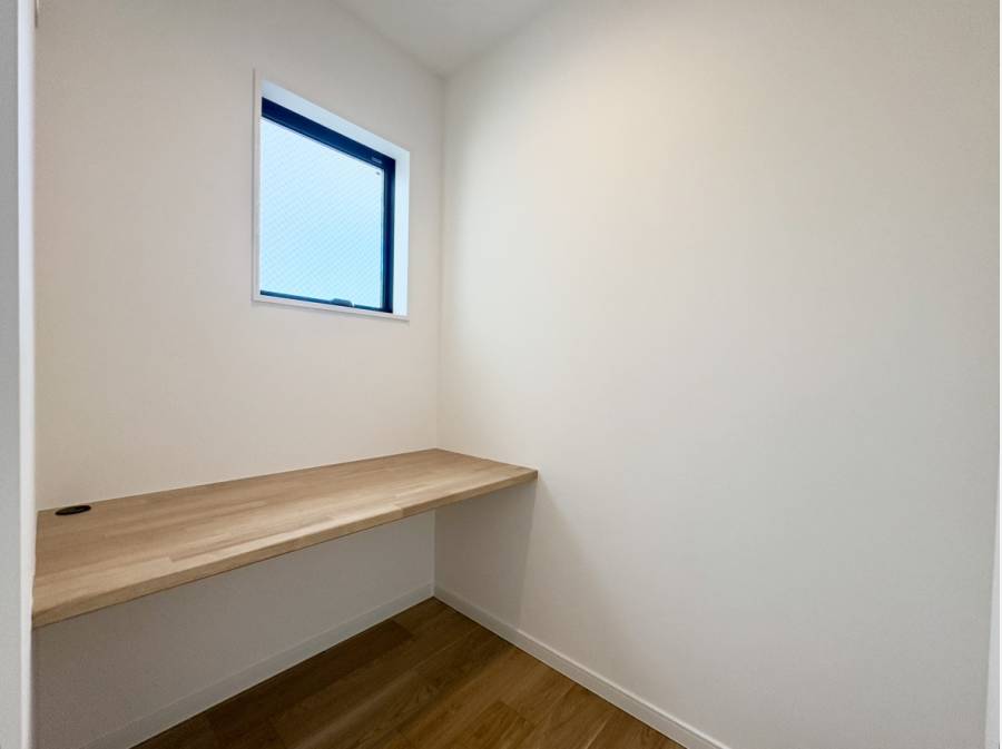 お洒落な塗壁や書斎スペース、吹抜天井のLDKなど心躍るお家となっております。