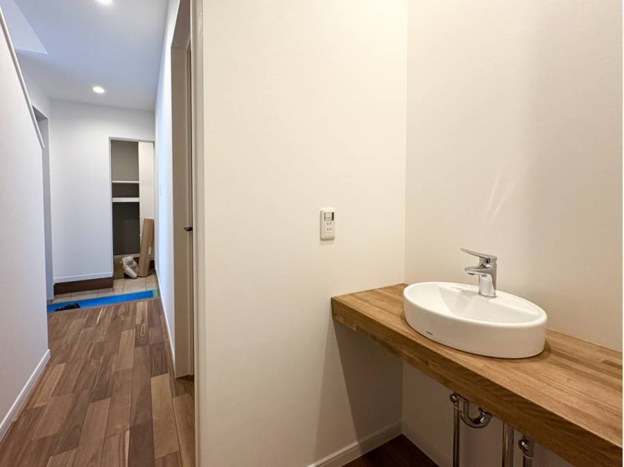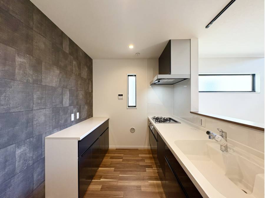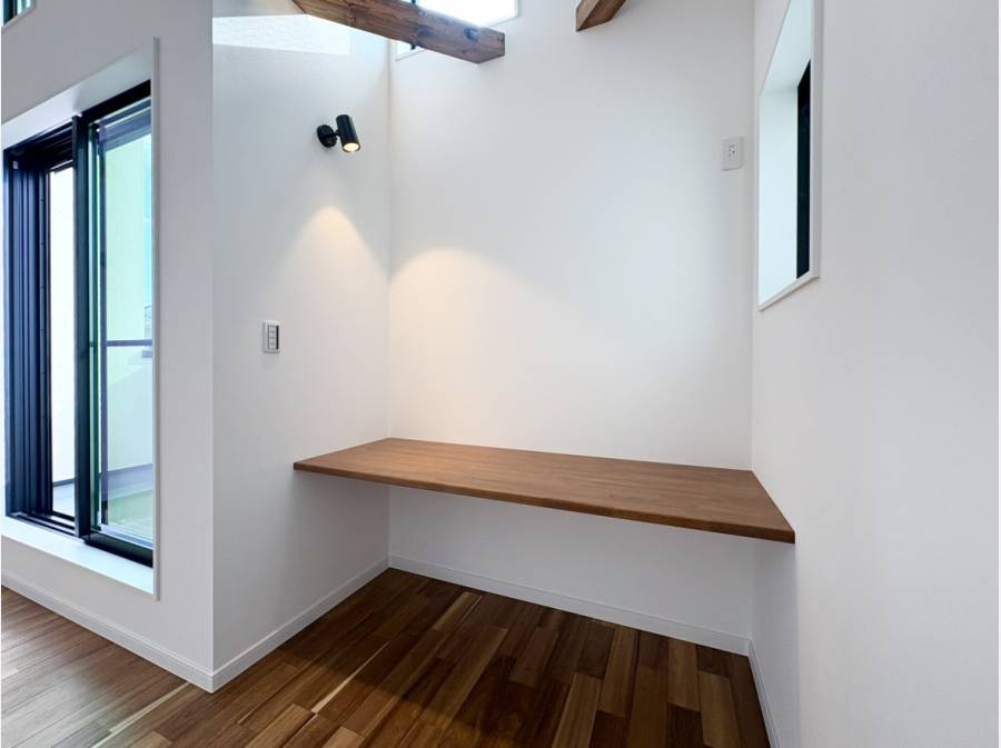 お洒落な塗壁や多目的カウンター、吹抜天井のLDKなどデザイン性と快適さを兼ね備えたお家でございます。