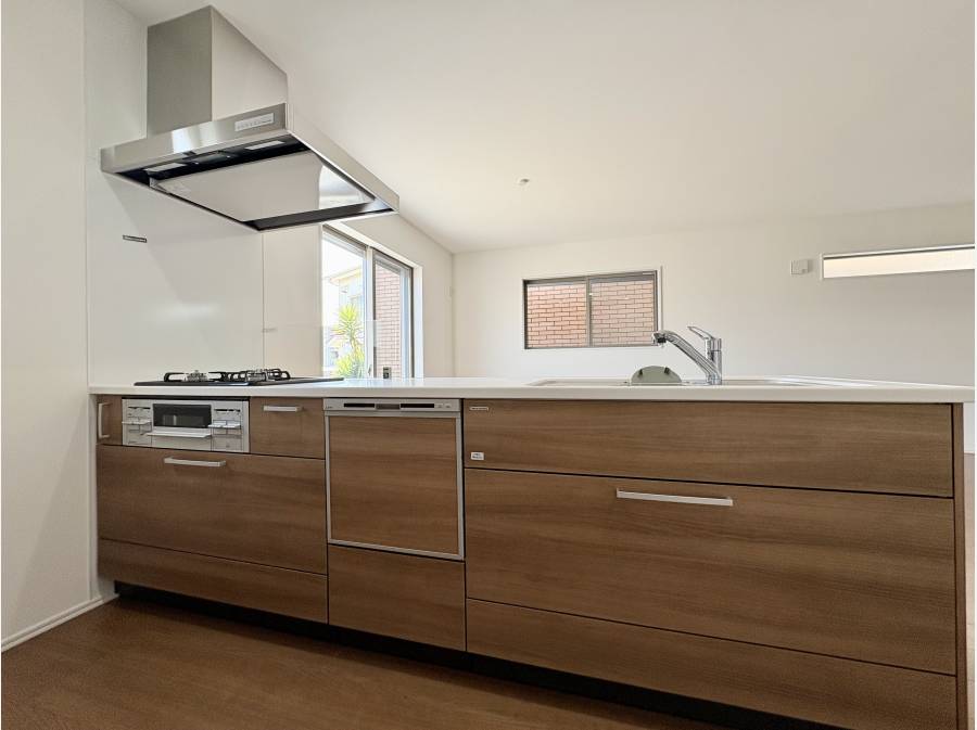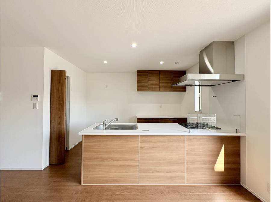 キッチンは対面式キッチンの後ろには食器棚を置くスペースがあります。またパントリースペースを完備。料理のしやすい設計が施されています。