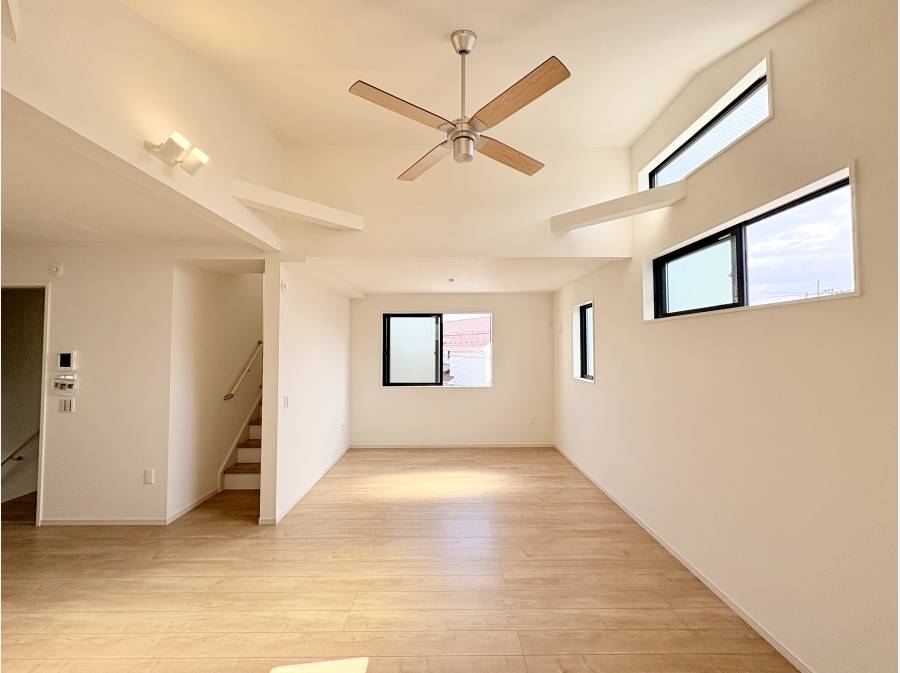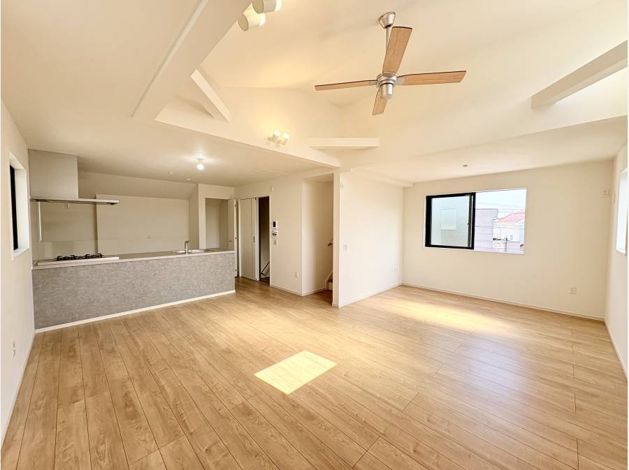 折上天井の広々LDKとスカイバルコニーが魅力。海に近く、駐車スペース2台付きの快適な住まい。