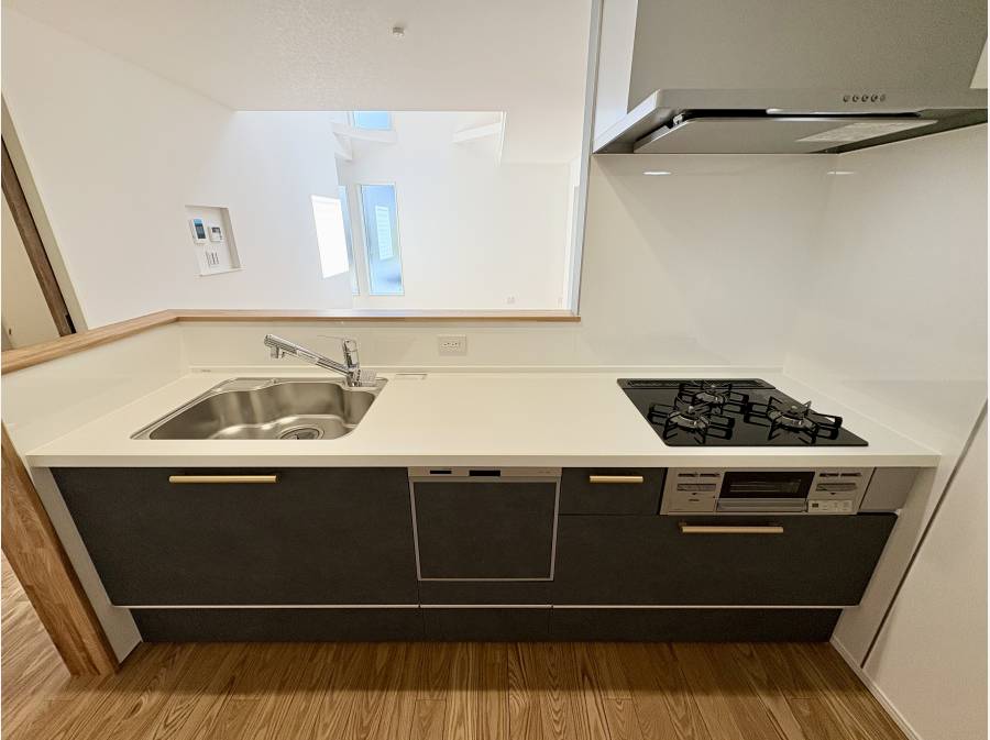 対面式キッチンには食洗機が付いており、家事の負担を減らしてくれます。装飾にもお洒落な工夫が施されています。