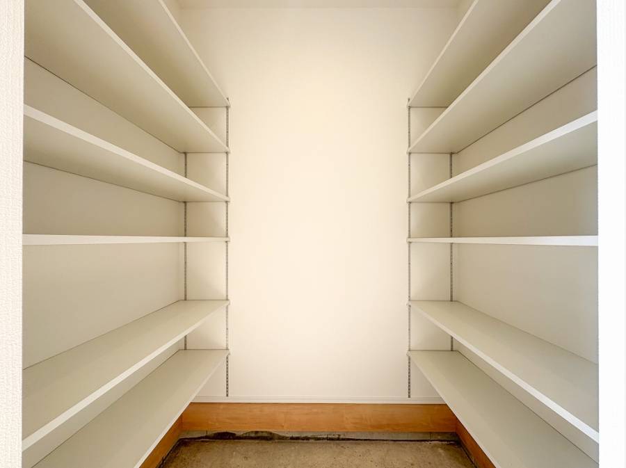 玄関のシューズインクロークに加え、パントリーやウォークスルークローゼットも完備されたたっぷりの収納が魅力的。