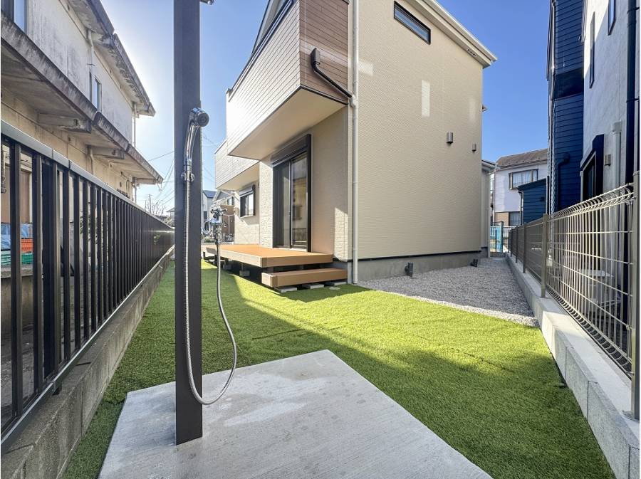 54坪超のゆとりある敷地に佇み、カースペースや広いお庭が備わっています。