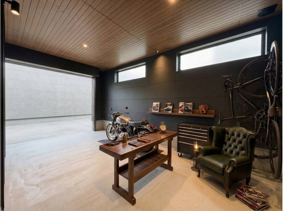 また、高さ約2.4mのシャッター付きガレージは、愛車を守るだけでなく、趣味の部屋や子供の遊び場としても活用できます。