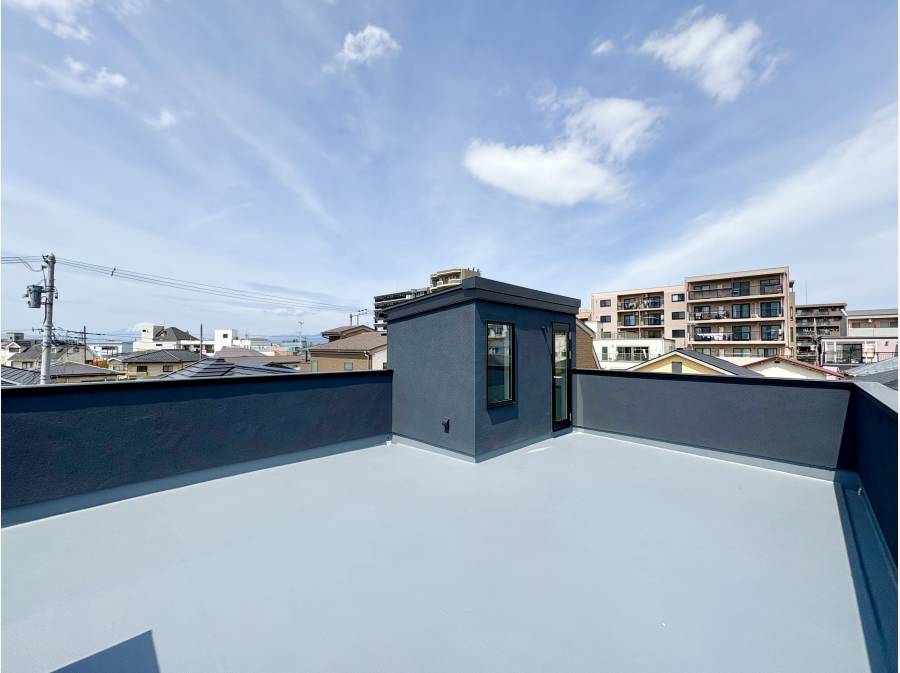 約21.8帖の広々としたルーフバルコニーが特徴で、水栓やコンセントが設置されており、富士山を眺めながらアウトドアリビングを楽しむことができます。家族でのBBQやリラックスしたひとときにもぴったりです。