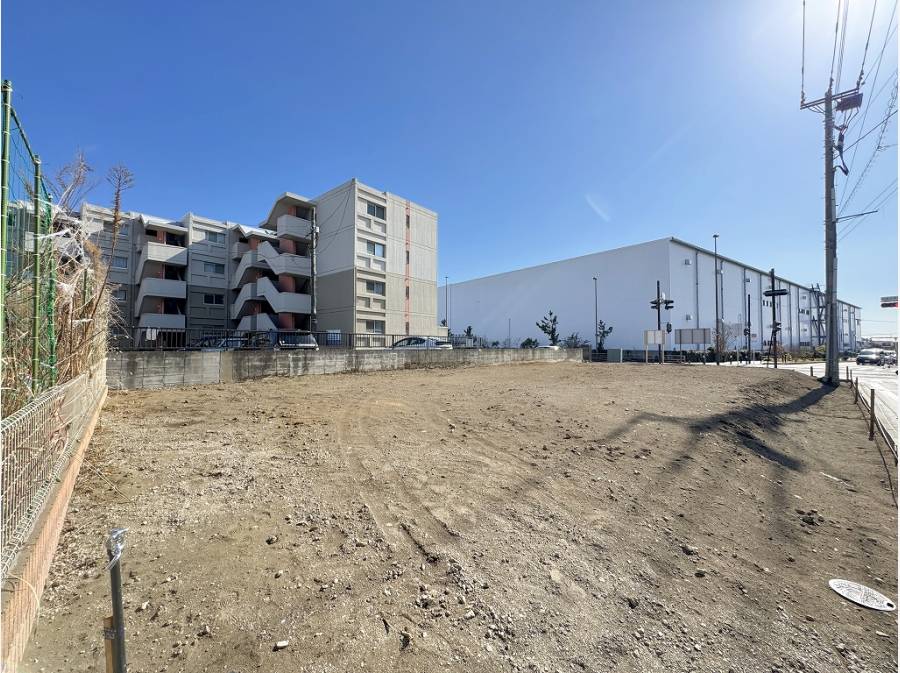 国道1号線に面した南西角地のこちらの土地は120坪超と存在感たっぷり!