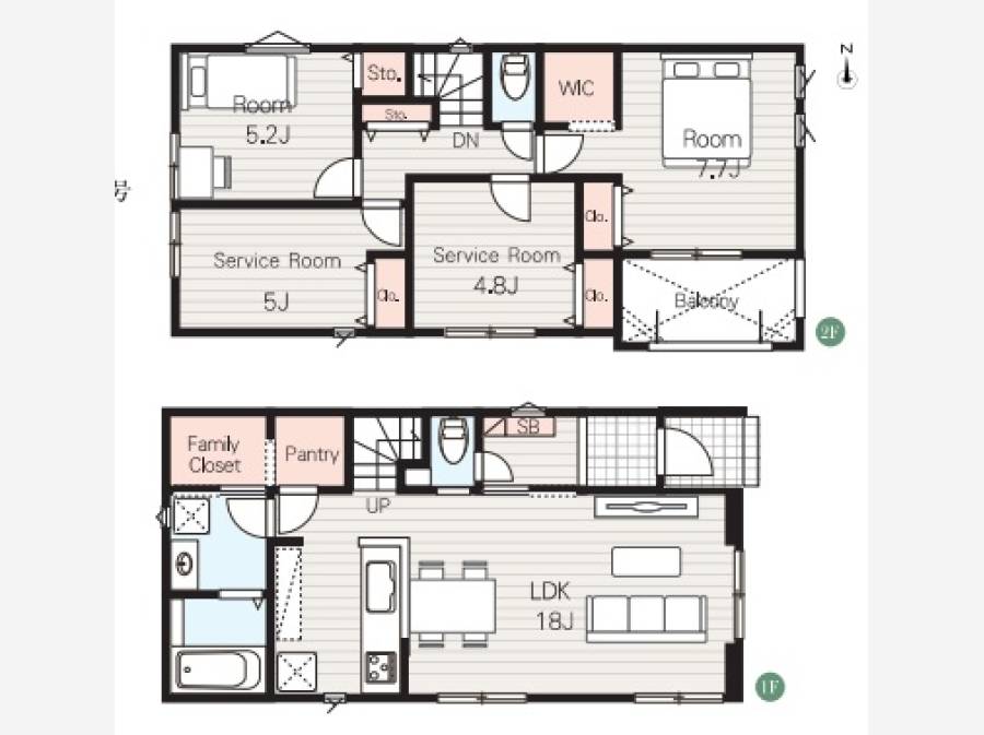 | 間取り | 2LDK + 2サービスルーム(5.0帖+4.8帖)+ファミリークローゼット+ウォークインクローゼット+パントリー 間取り・区画図を取り寄せる | 構造・階建て | 木造 地上2階 |