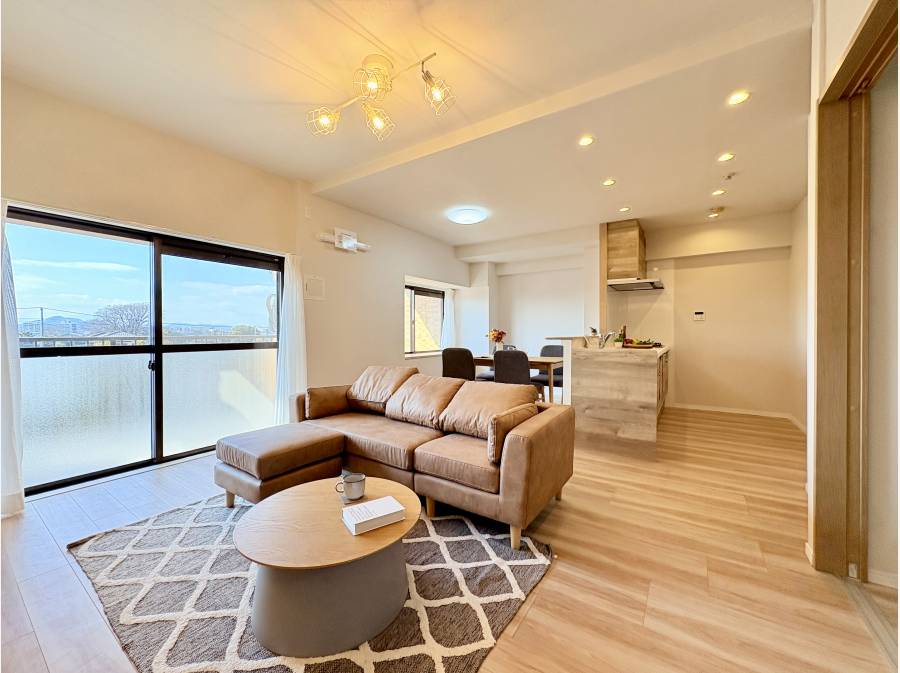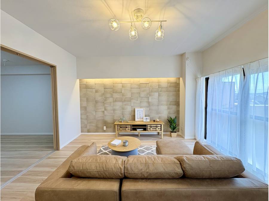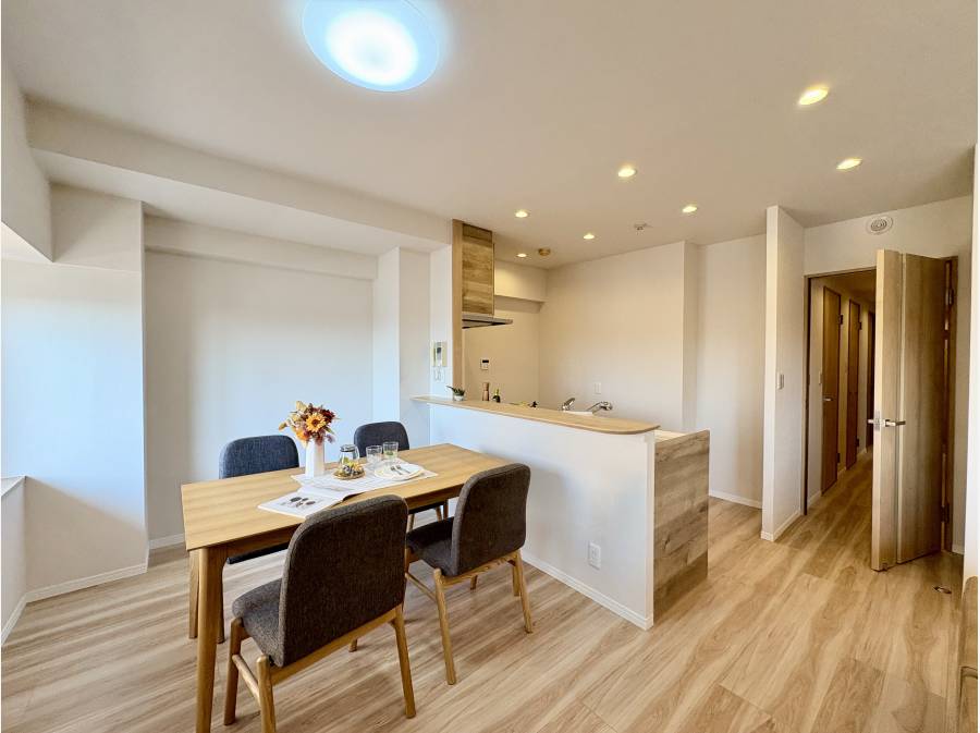 新規リノベーション物件、元々は築平成元年に完成したマンションです。シンプル・北欧風家具など幅広いコーディネートを楽しめるようにナチュラルなインテリアテイストに仕上げています。プランナーのこだわりを感じる内装をご案内します。
