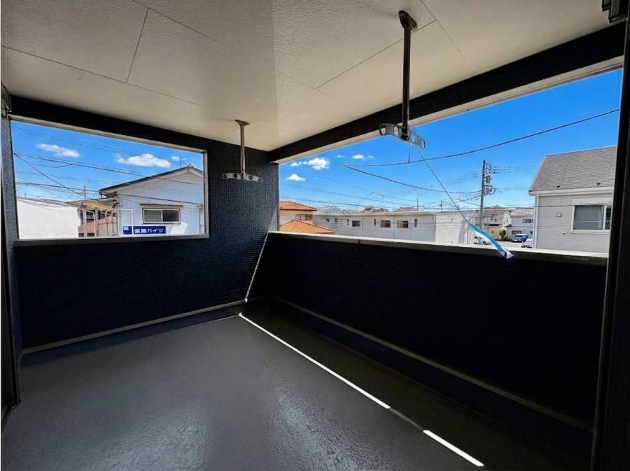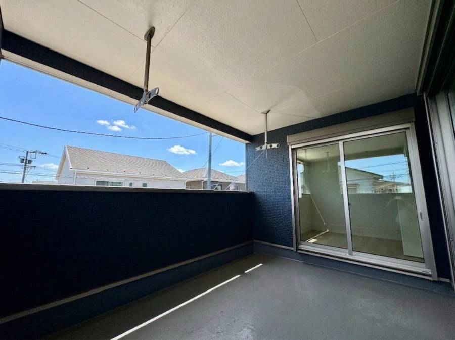 屋根があるプライベートバルコニーだからこそ、暑い日差しの日でものんびり過ごすことが出来ます。また、雨が降りそうな日でも安心して洗濯物を干すことが出来ます。バルコニーからは海風を感じることが出来、富士山も見ることが出来ますよ。