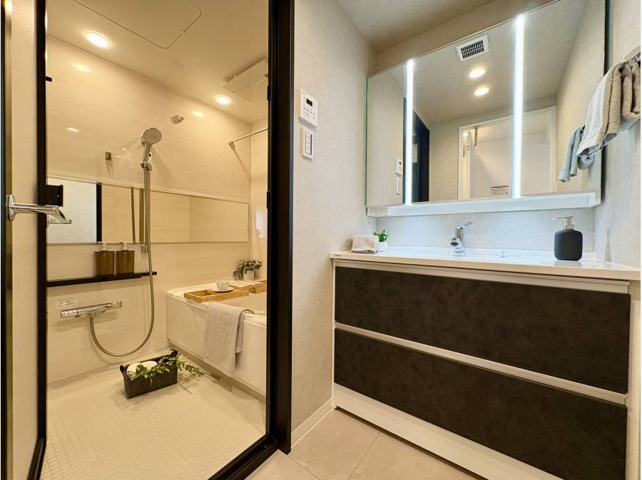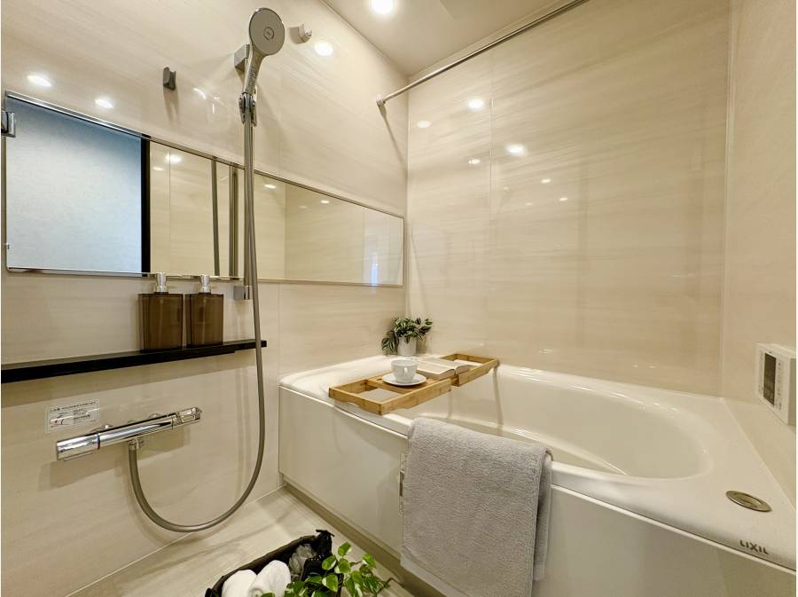 リフォームでは、クリナップ製の食洗機付きシステムキッチンやリクシル製の換気乾燥暖房機付きユニットバスなど、最新設備が導入されています。さらに、専有部分内の給湯・給水・排水管も新規交換されており、細部まで安心して暮らせる仕様です。