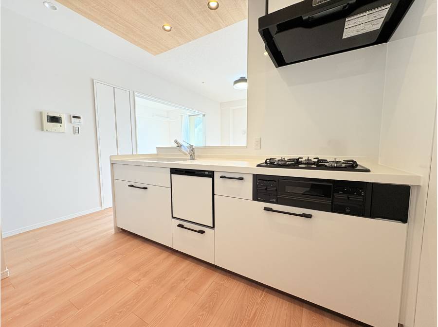 室内はフルリノベーション済みで、システムキッチンやユニットバス、洗面化粧台、トイレなどの水回り設備はすべて新品に交換。クロスやフローリングも一新され、新築のような清潔感が魅力です。