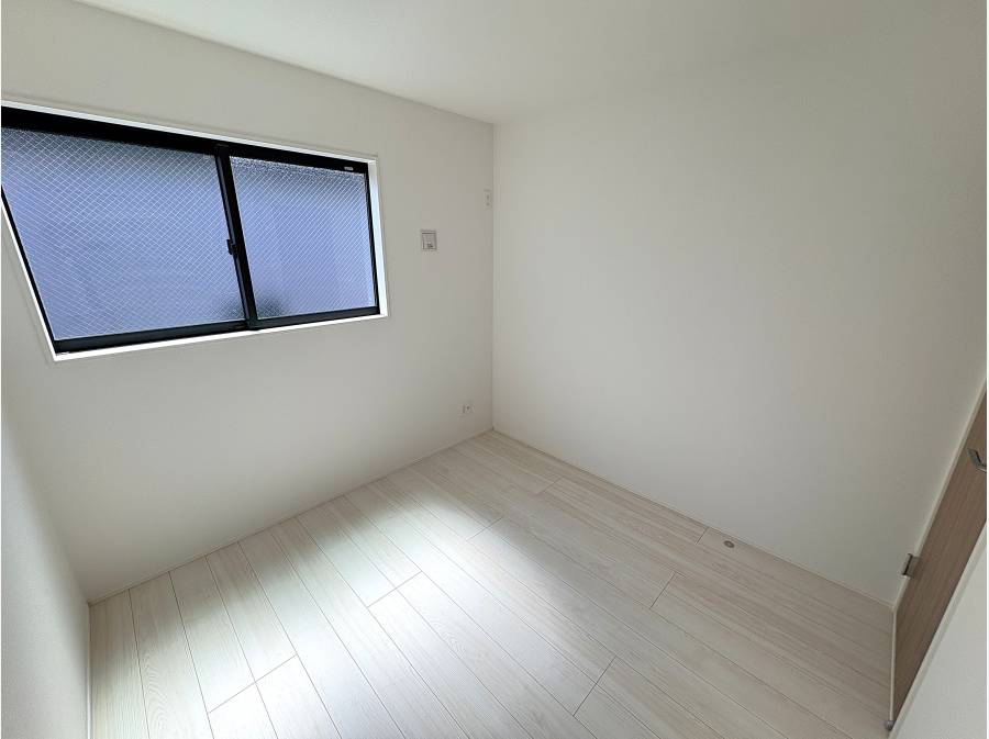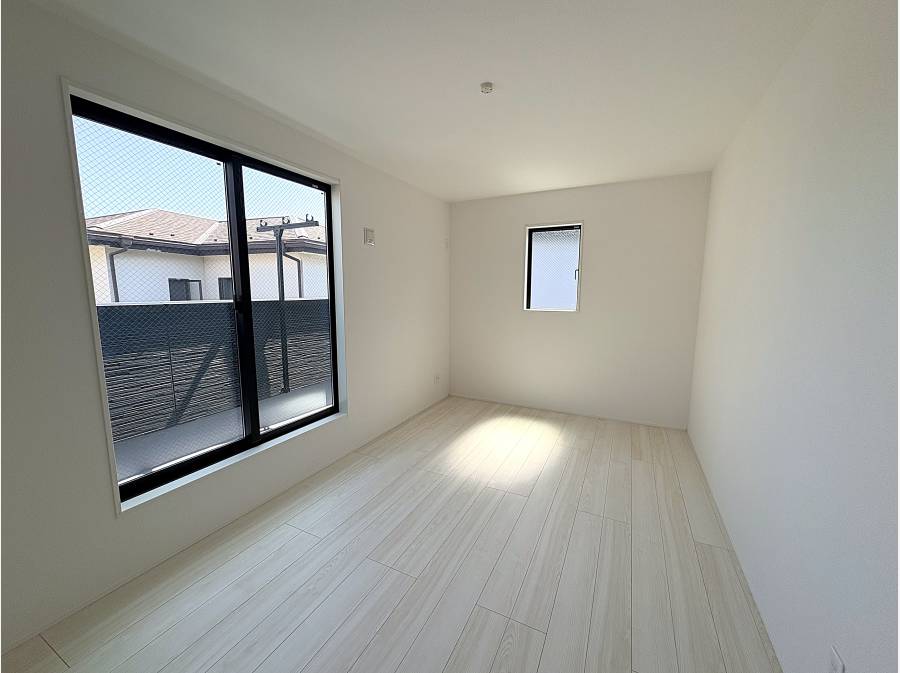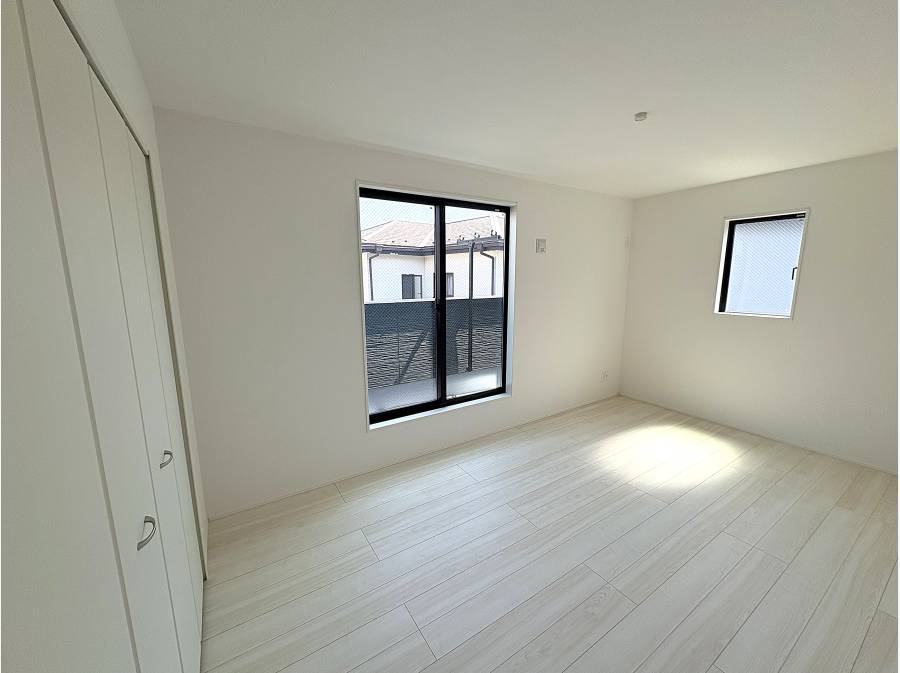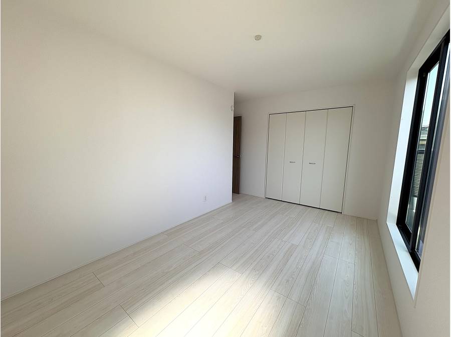 洋室は、明るい色合いのフローリングと白い壁で統一され、清潔感が漂う空間。プライバシーに配慮したすりガラス窓やバルコニーに繋がる窓から、心地よい陽射しと風を取り入れることができます。また、全居室に枕棚とハンガーパイプ付きのクローゼットを設置し、収納力も充実しているため、お部屋をすっきりした状態で広く使えます。