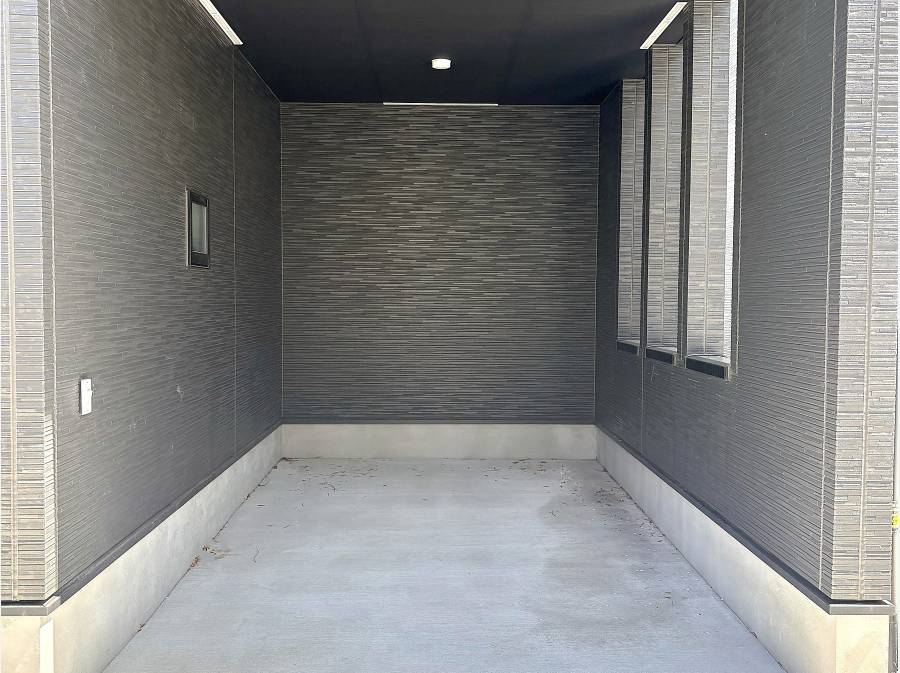 黒を基調とした洗練された外観が印象的なこの邸宅には、大切な車を守るビルトインガレージを備えています。雨風を防ぐだけでなく、雨の日の買い物や重い荷物の積み下ろしもスムーズに行える便利な空間です。車のお手入れにも集中できる実用的な設備となっています。