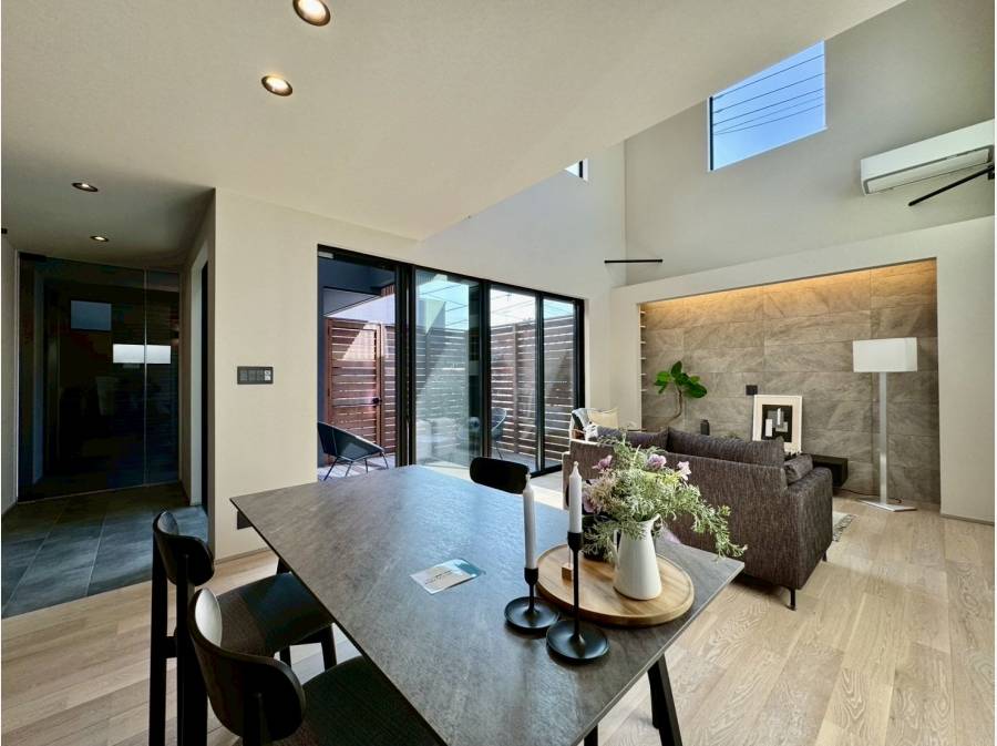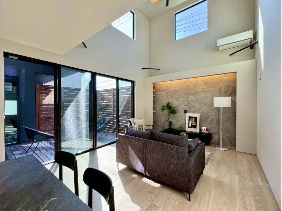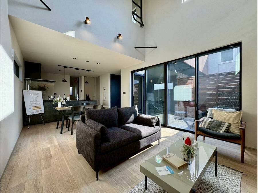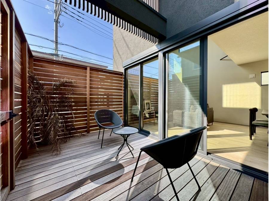 1階のLDK横にはウッドフェンスが設置され、プライベート感を感じられる空間が魅力です。