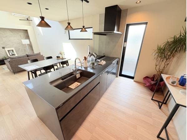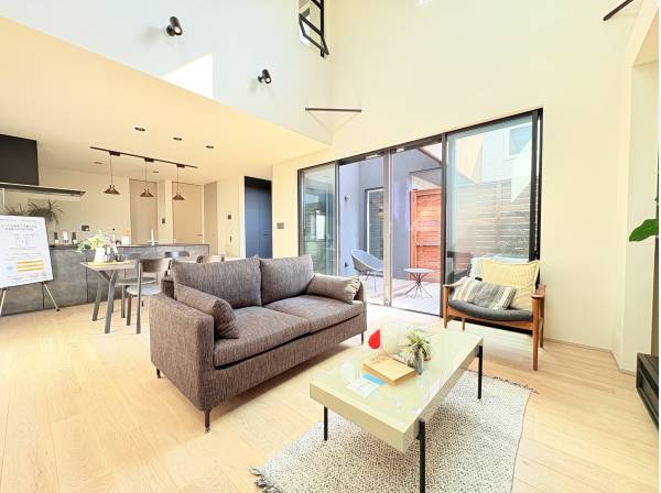 約21.0帖のLDKには、天井高が5mを超える吹き抜けがあり、圧倒的な開放感を感じられます。