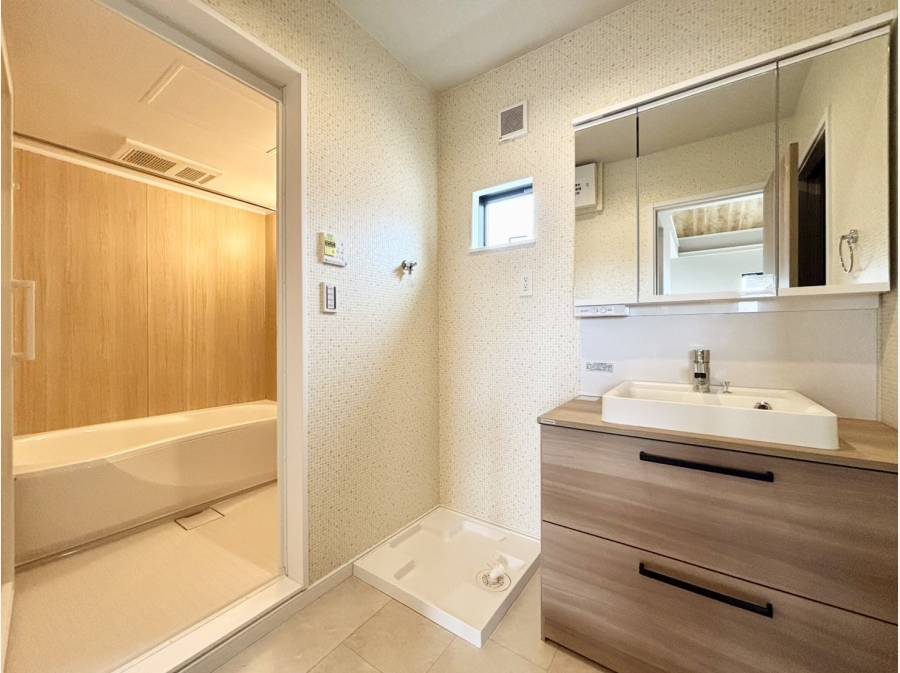 設備も床暖房付きのリビング、食洗機付きシステムキッチン、2か所の洗面台など、暮らしの快適性を重視しました。また、耐震等級3を取得し、フラット35Sの金利優遇にも対応しており、安心して暮らせる住まいです。