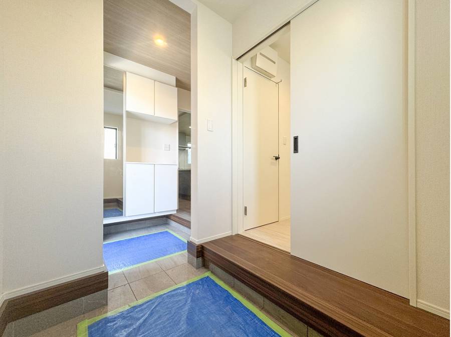 玄関横に設けられたシューズインクロークから直接バスサニタリーへアクセス可能。