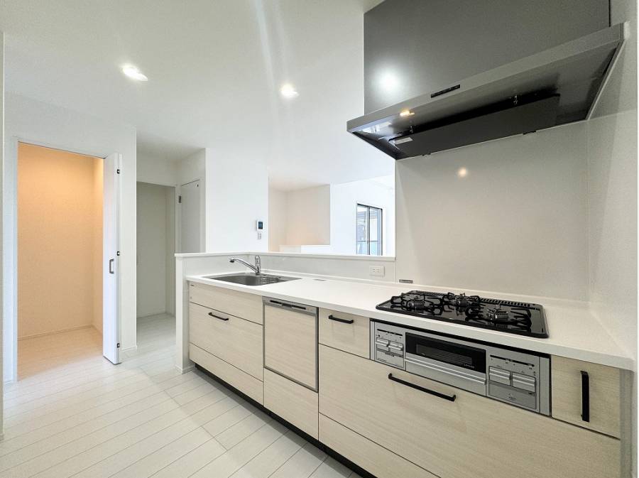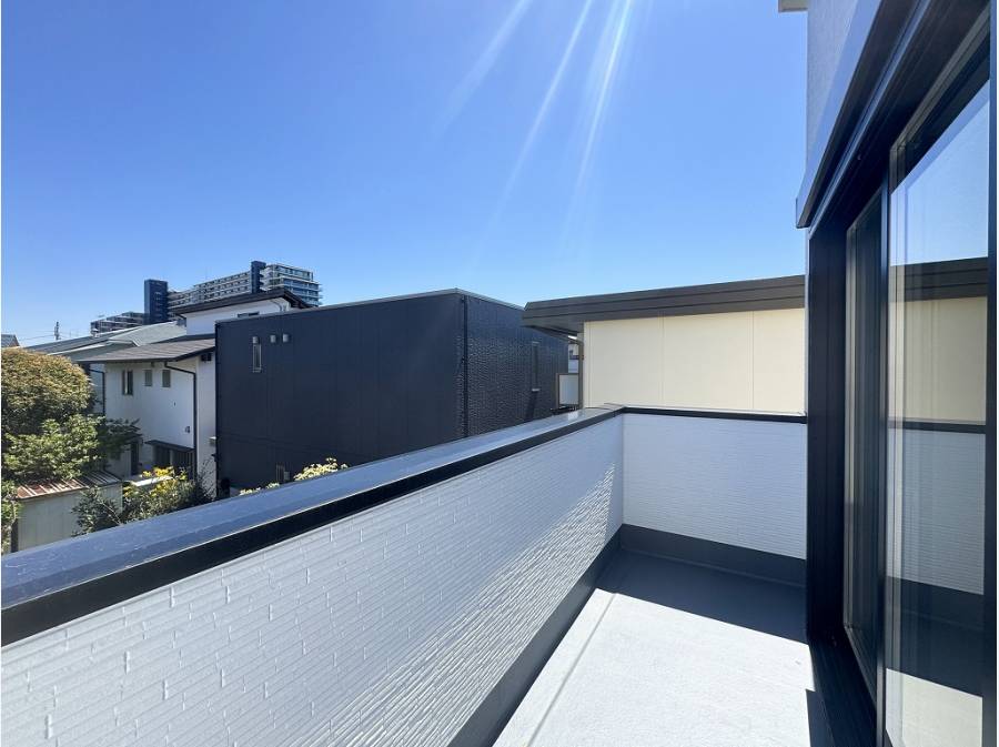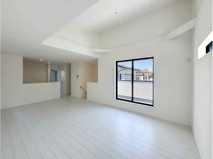明るい色調の内装に伸びやかな吹抜けが開放感を与え、隣接するバルコニーがさらに視界を広げます。
