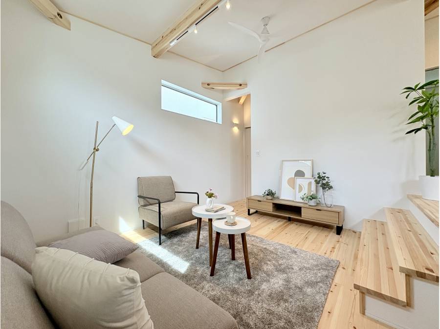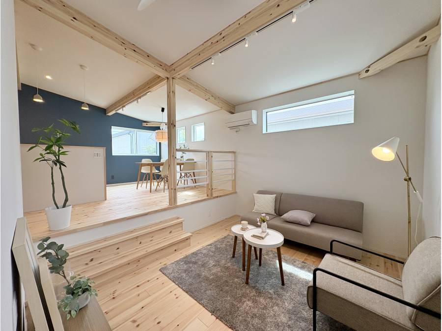 また、壁ではなく床の高低差を利用した間取りが、広がりと開放感を演出しています。