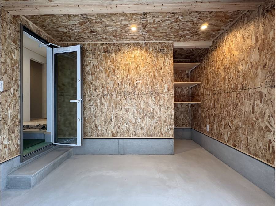 約3.5帖のガレージは、アウトドア趣味のアイテムを保管するのに便利な空間です。さらに1階には約7帖のインサイドストッカー付きの洋室を設けており、漫画や楽器などインドア趣味のアイテムを収納可能です。アウトドアとインドア、どちらにも対応した遊び心のある住まいです。