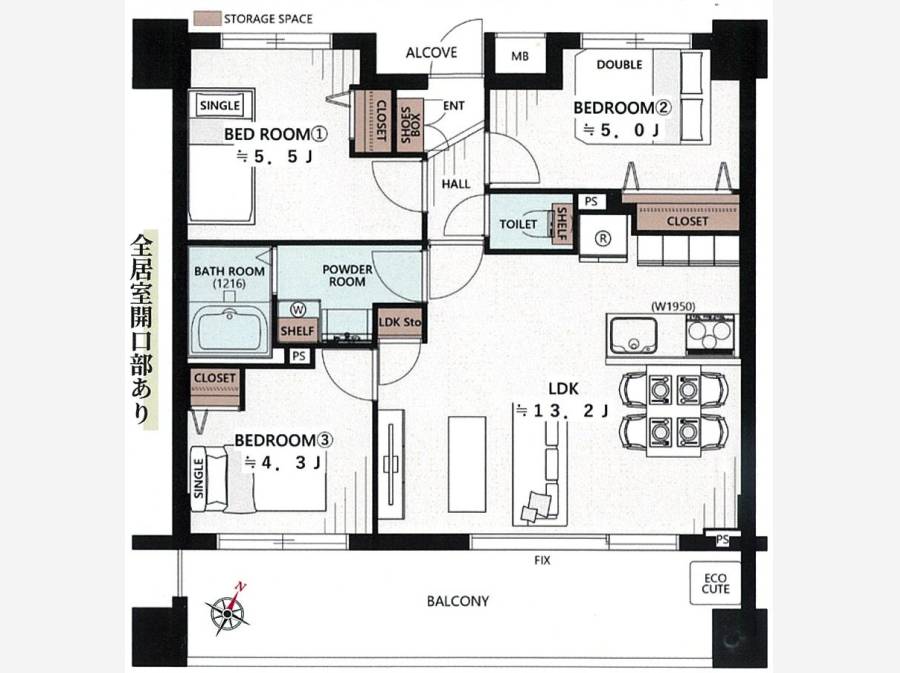 | 専有面積 | 60.54m² (壁芯) | 管理形態 | 日勤 |
