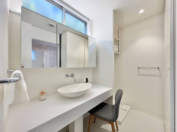 廊下を進むと階段があり、下りると洗面スペースを備えた半地下のお部屋があります。