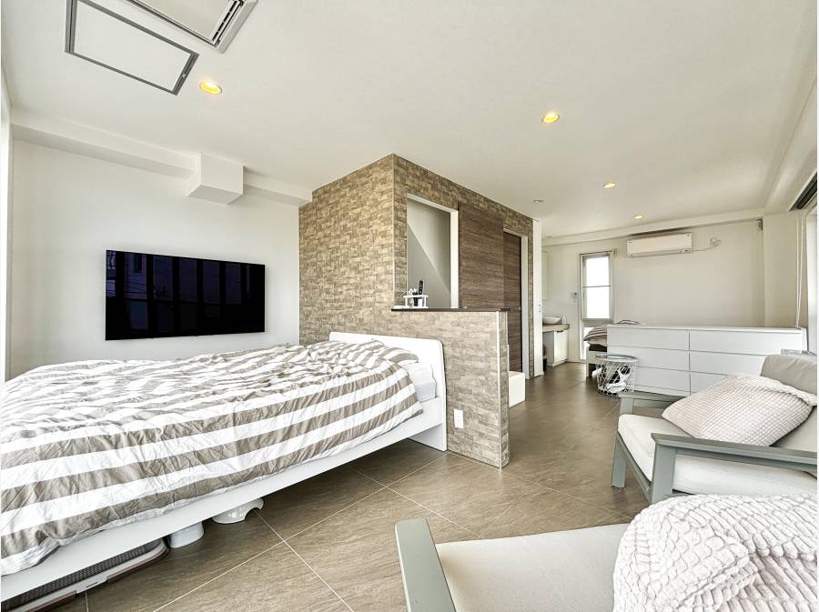 ご紹介の物件は国道134号線から1本入った、閑静な住宅街に位置していて、建物は2021年にスケルトンの状態から、ホテルライクにフルリノベーション済