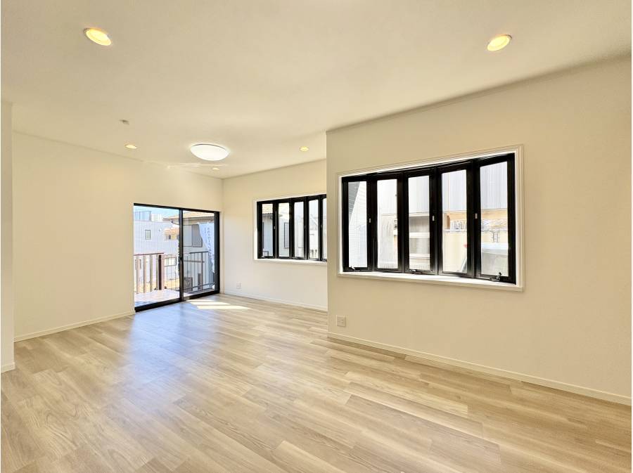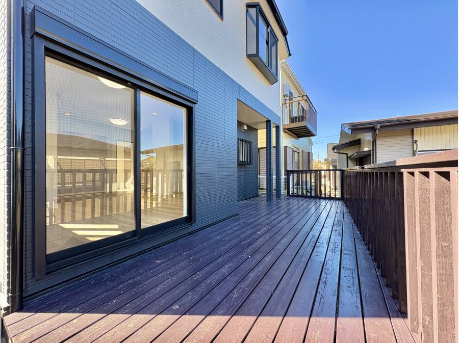 リビング・ダイニング・キッチン(LDK)の窓からは広々としたウッドデッキがつながり、晴れた日にはリビングの延長としてお使いいただけます。