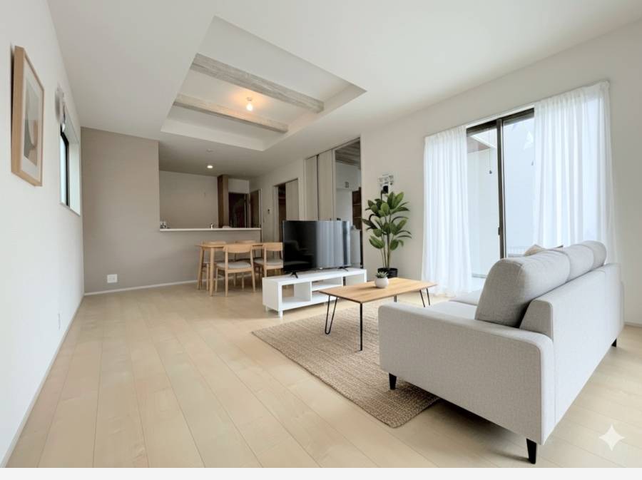 広々としたリビングは、家族が自然と集まる心地よい空間。暮らしをより豊かにする住まいです。