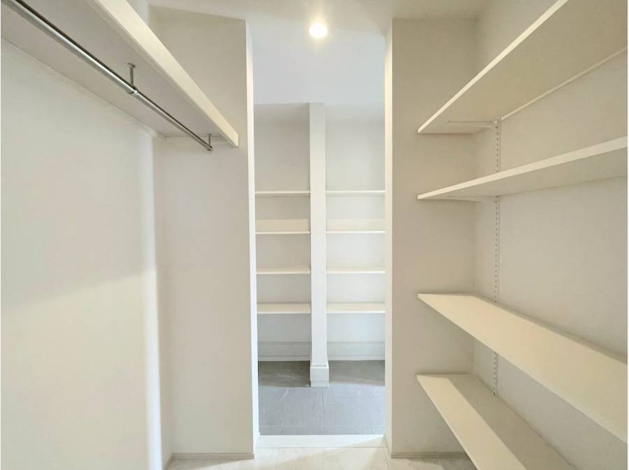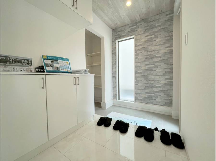 エントランスには大容量のSICがあり、靴やアウトドア用品もすっきり収納可能。さらに、ストレージルームを通り抜けてリビングに繋がる便利な動線が日々の暮らしを快適にサポートします。