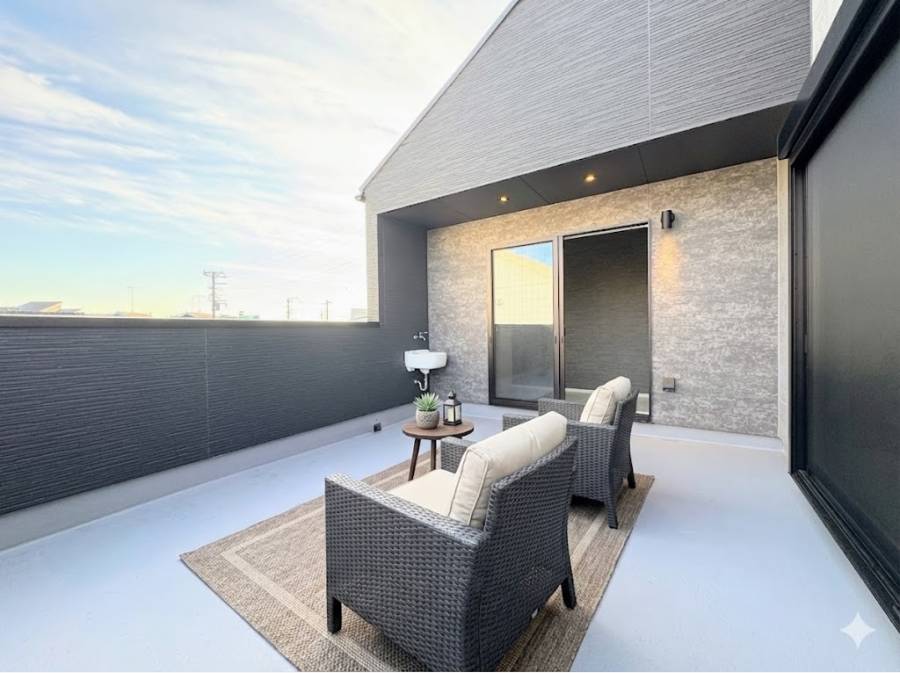 この邸宅の魅力の一つは、大型スカイバルコニーです。開放感あふれるこの特別な空間は、青空の下でのリラックスタイムや、ご家族・友人と楽しむBBQ、夜には星空鑑賞など、多彩なシーンで活用できます。まさに、もう一つのリビングと呼べる空間です。