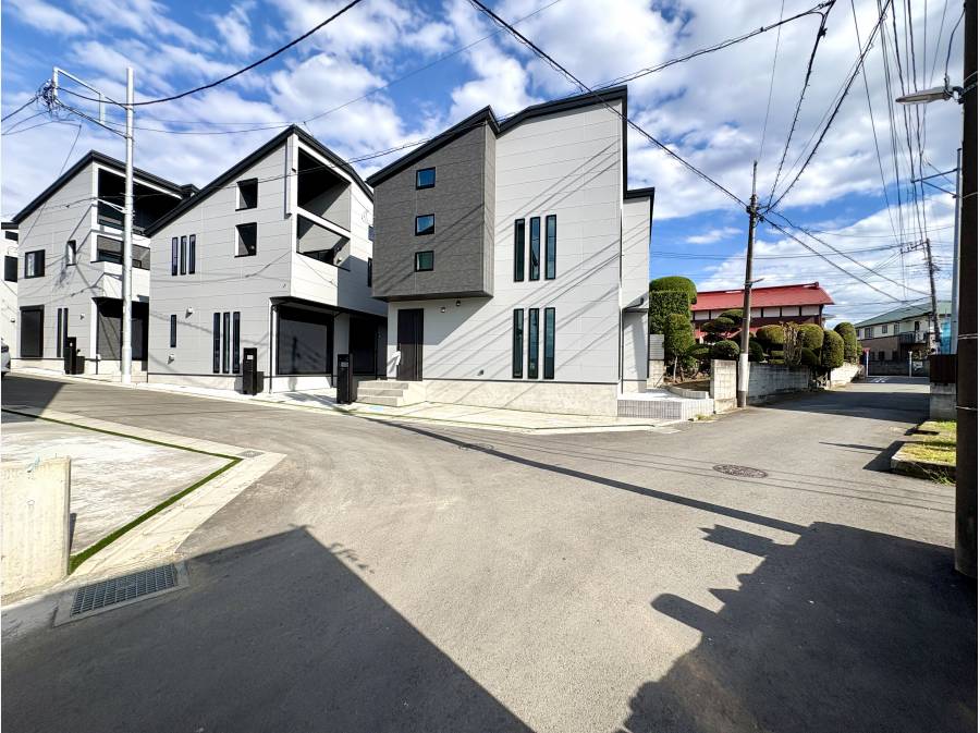 7区画の整った街並みに佇む、南西角地の開放邸。