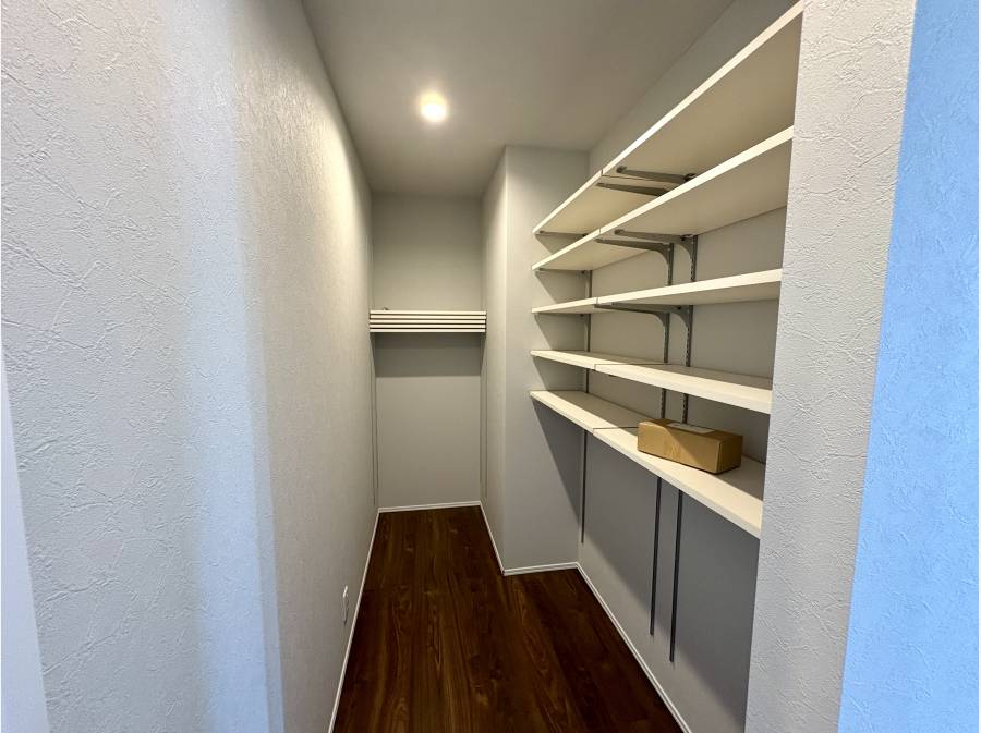 キッチン裏の大型パントリーやシューズインクロークなど、収納計画も充実。