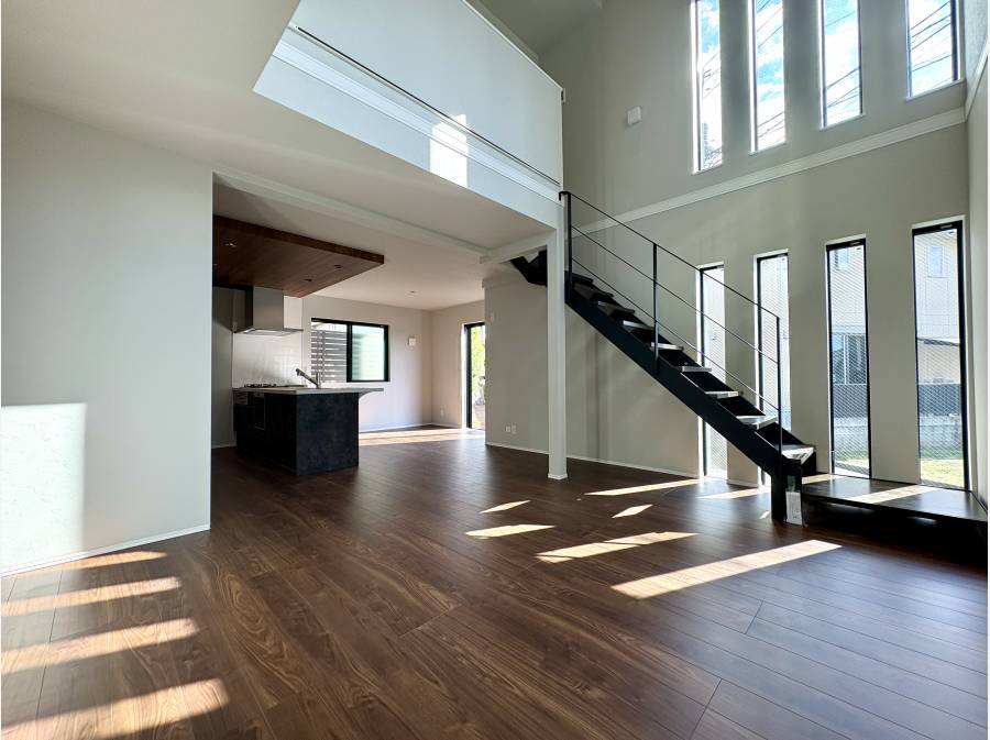南西向きのリビングは、2面採光で明るい空間が特徴です。さらに、上部にはロフトが設置されており、趣味部屋やワークスペースとしてお使いいただけます。都市ガスや本下水も整備されており、設備面での安心感もあります。新しい街並みの中で、快適で穏やかな新生活をスタートできる住まいです。