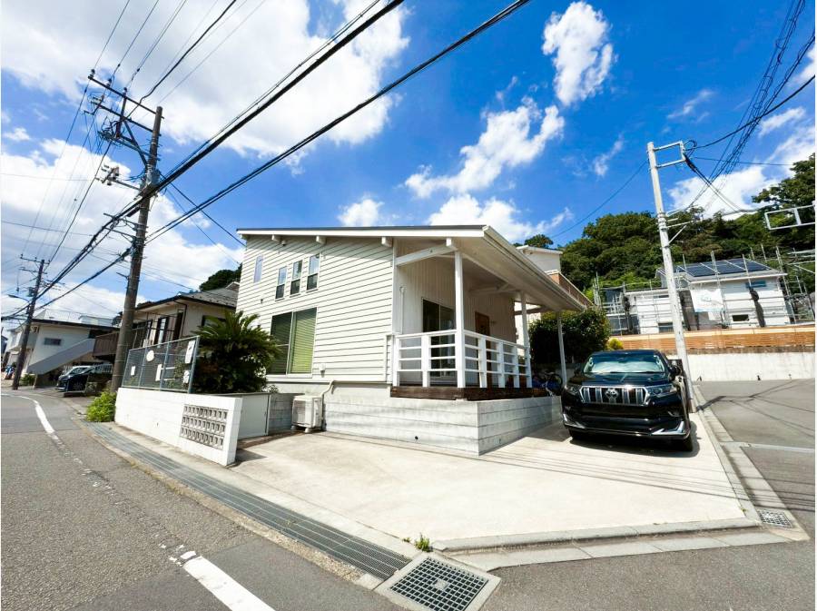 小田急線「藤沢本町駅」から徒歩15分のリバーサイドに建つ、青空が似合うカリフォルニアスタイルの住宅をご紹介します。令和2年築の新しい物件で、間取りは3LDKです。