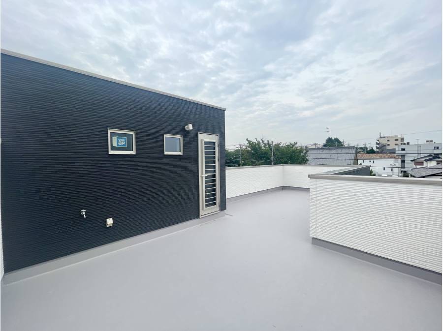3つの洋室はそれぞれ天井の仕様が異なり、家族の好みに応じた使い分けが可能です。また、最上階には広々としたルーフバルコニーがあり、水栓も備わっているため、バーベキューやプールなど多彩な用途で活用できます。