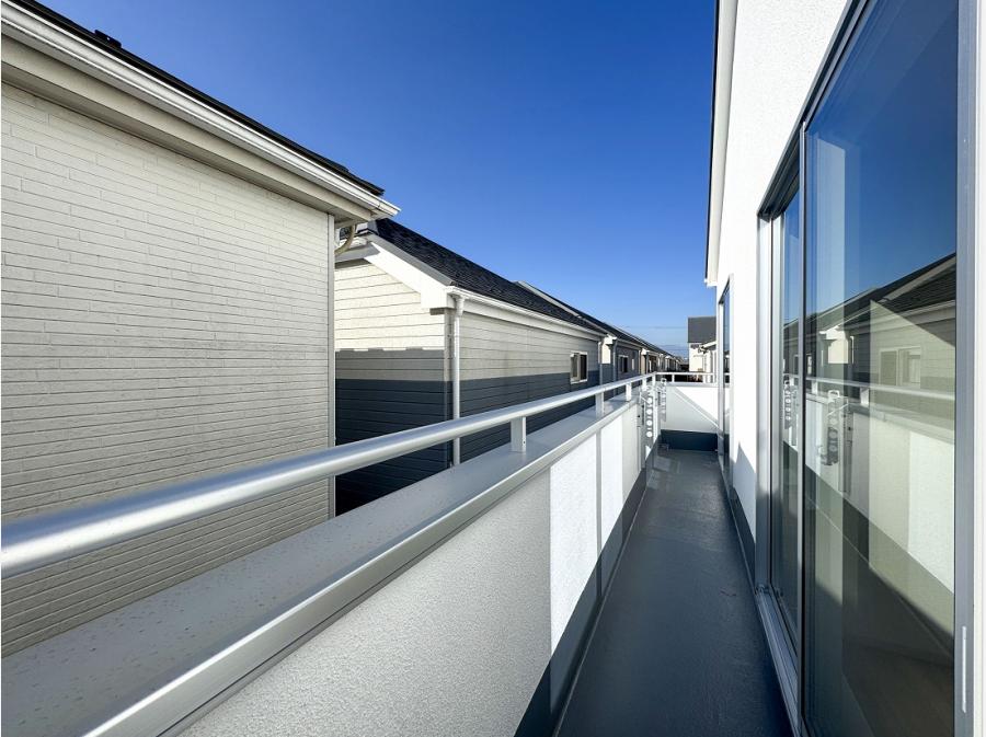 2つの部屋をまたがるワイドバルコニーは南西向きで、陽光がお部屋を暖かく照らします。
