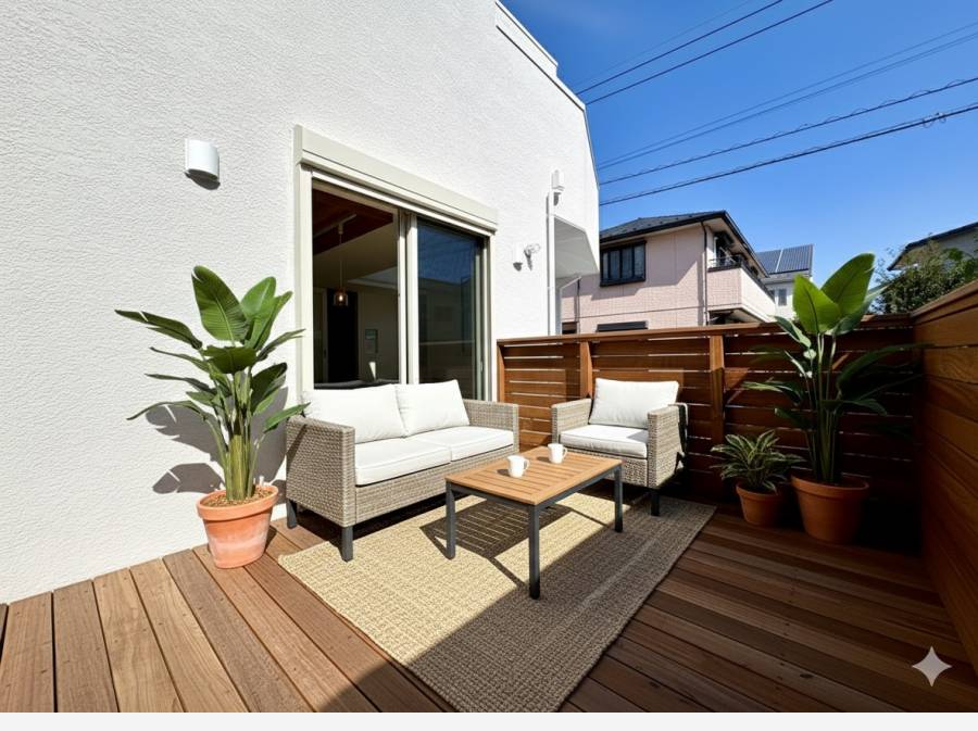 サーフィンの後に便利なお湯の出る屋外シャワーや、趣味の道具をすっきり収納できる備蓄倉庫など、湘南での暮らしを楽しむための工夫が随所に施されています。