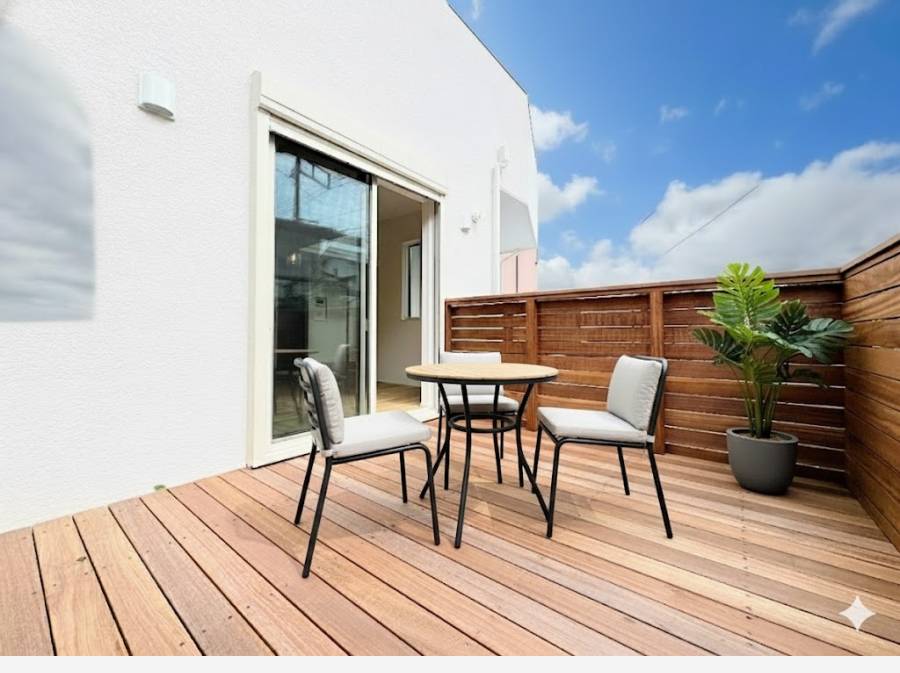 広々としたウッドテラスもこの邸宅の見どころです。休日には潮風を感じながらリラックスしたり、アウトドアを楽しんだりと、贅沢なひとときを過ごせます。