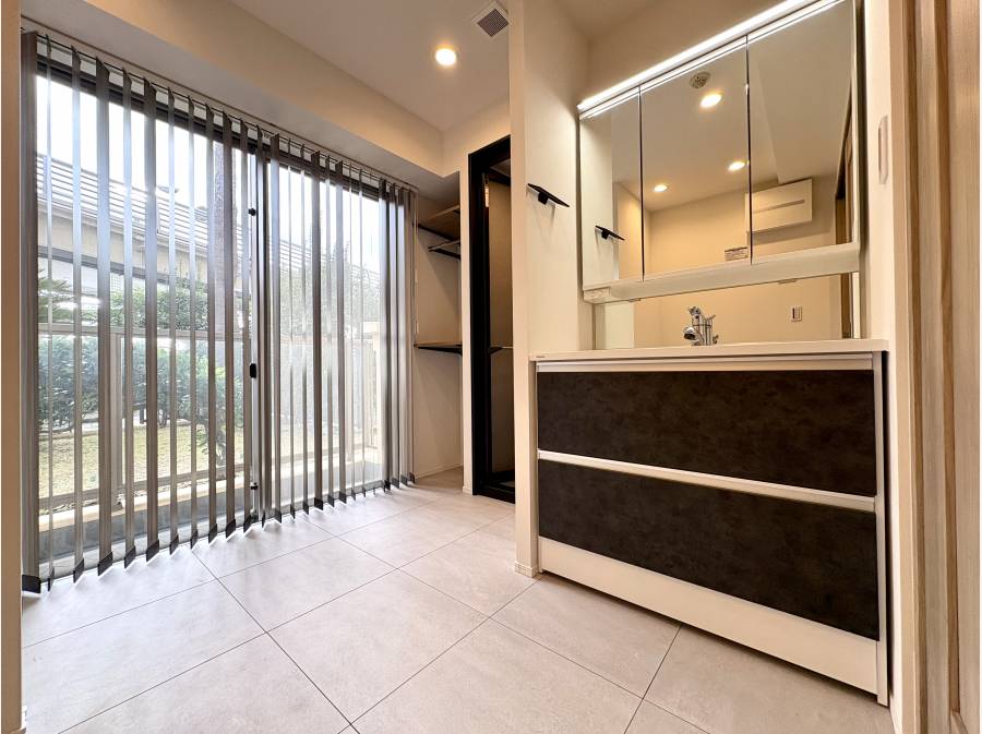 サーフボードも置けるよう設計された広々とした洗面室など、湘南ライフに最適化された空間が広がります。