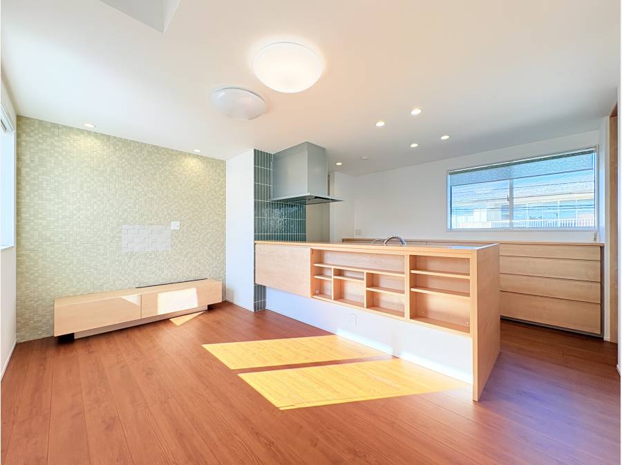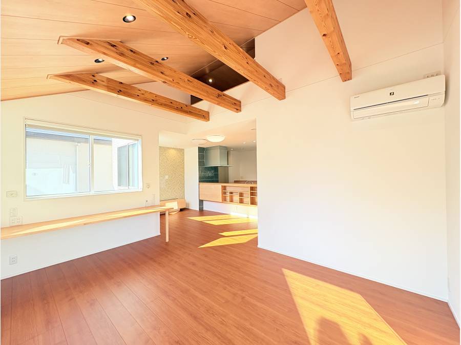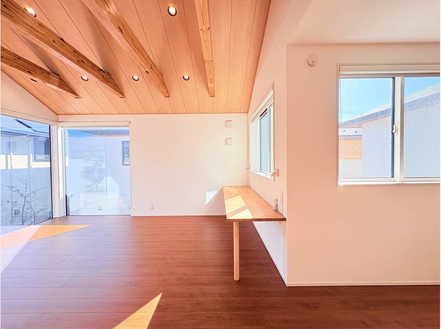 大きな窓で明るさが広がる家。21帖のLDKが開放的な空間を演出します。