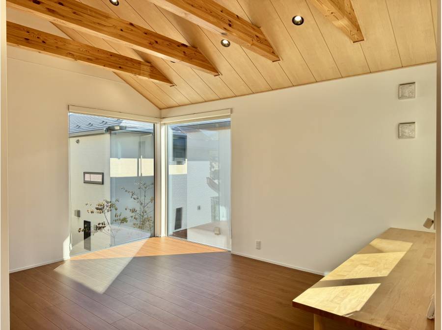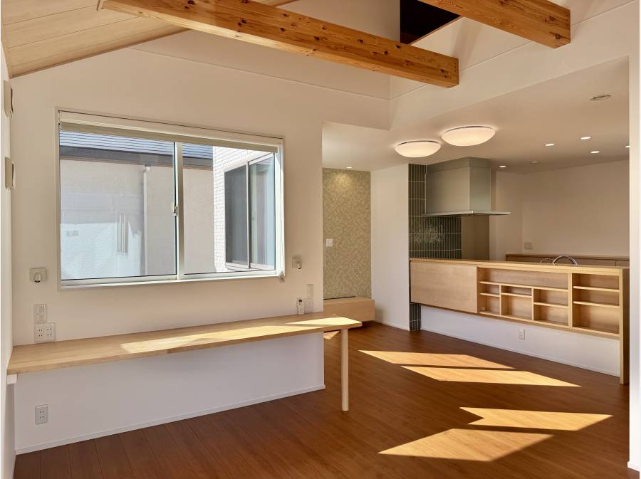 木と自然素材の質感を大切にした注文住宅。リビングに差し込む陽光、ロフトやワークスペースの柔軟性、家族それぞれの時間が心地よく交差する間取り設計。辻堂東海岸の穏やかな街並みに溶け込む、上品で落ち着いた佇まいです。