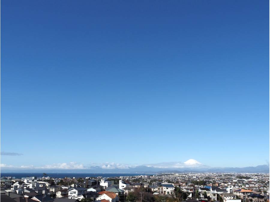 高台のポジションからは、眼下に広がる街並み、その先には海や富士山を望む景色を楽しむことも。