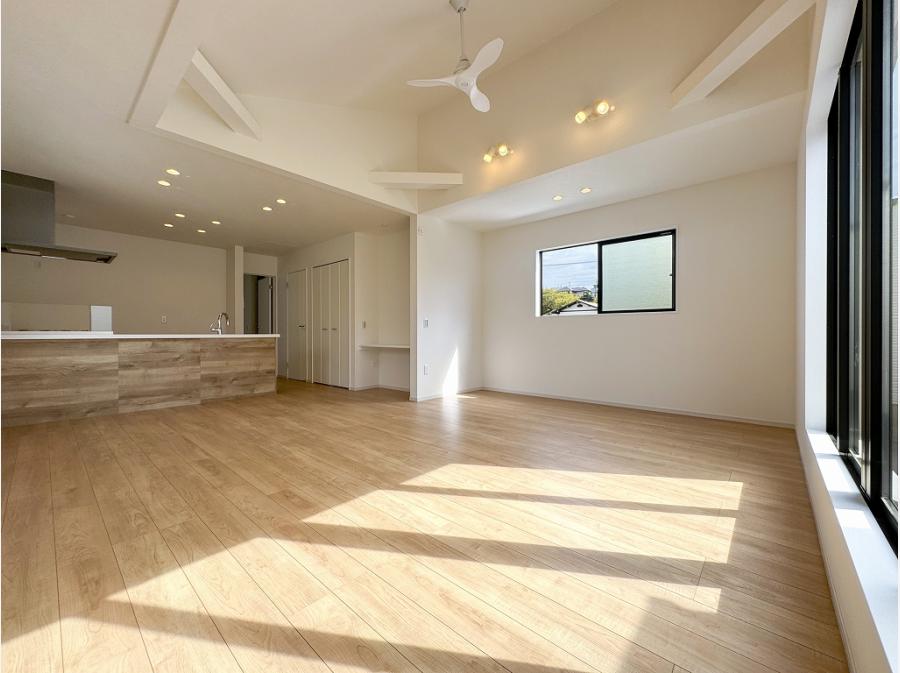 20帖超のLDKは伸びやかな吹抜けと広いバルコニーが寄り添い開放的。