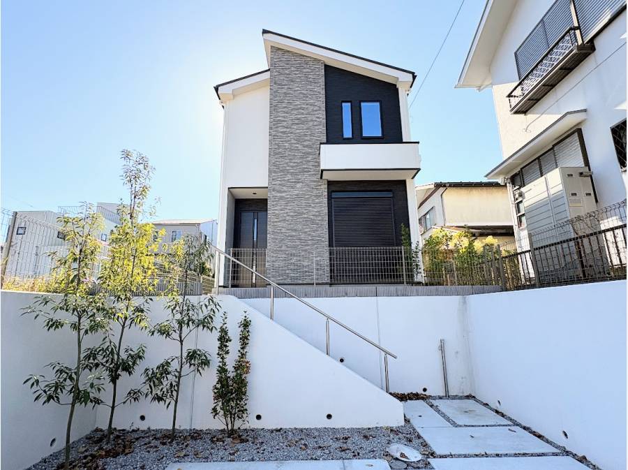 緑に囲まれた片瀬山の高台に、光と風を感じる新築邸宅が誕生しました。片瀬山駅から徒歩12分の立地で、静かで落ち着いた住環境が広がります。